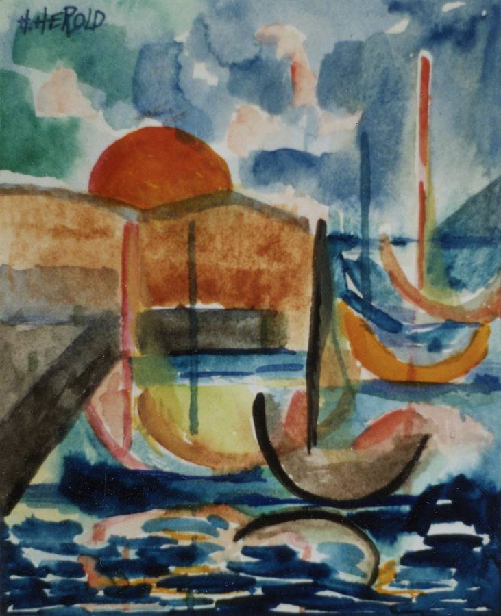 Bootshafen · Aquarell · 14,4 x 11,7 cm · 2008 · Privatbesitz