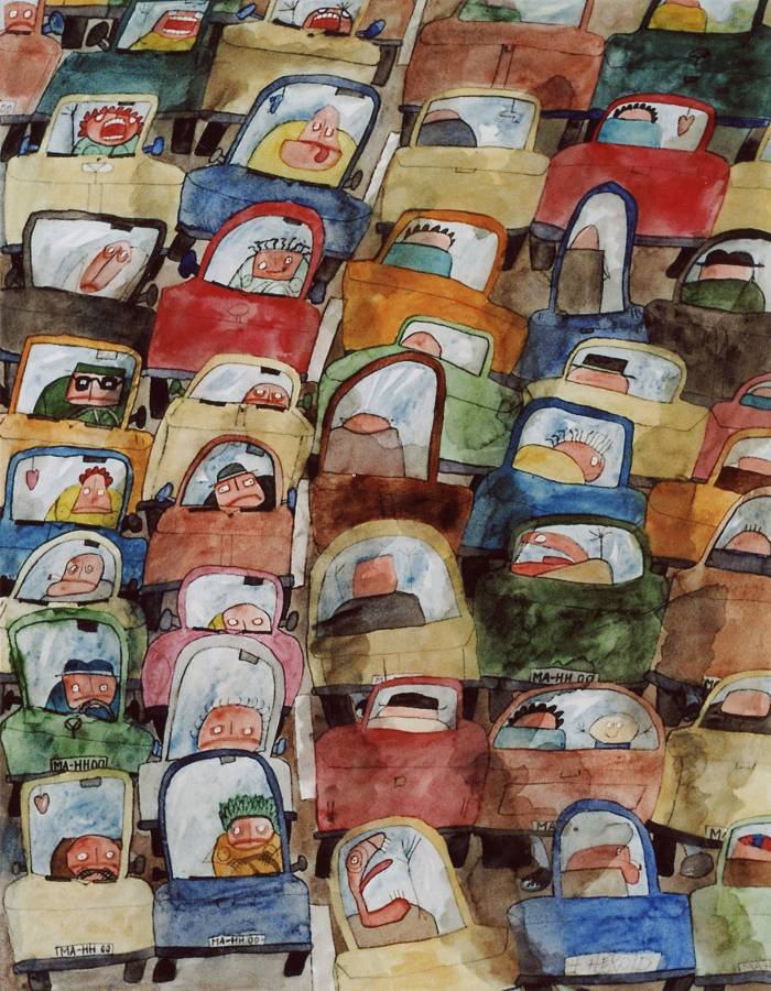 Kleine Stauorgie · Aquarell · 53 x 41 cm · 2009 · Privatbesitz