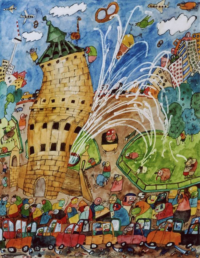 Der Wasserturm, Vorderseite · Aquarell · 53 x 41 cm · 2009