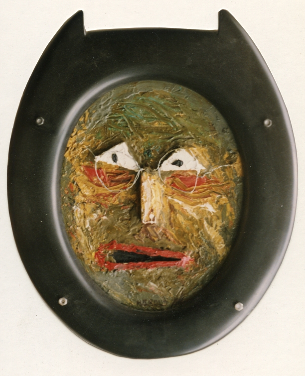 Kopf · Objekt aus Klobrille, Holz, Draht, Ölfarbe, Hartfaser · H 47,5cm B 39,5cm T 4cm · 1991 . Verbleib unbekannt