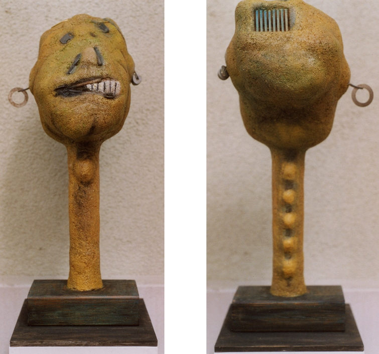 Kopf (Ansichten) · Steinholz, Holz, Metalle, Ölfarben · H 59cm B 26cm T 32cm · 2005 . Verbleib unbekannt