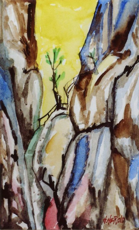 In einer Schlucht · Aquarell · 15 x 9 cm · 2011