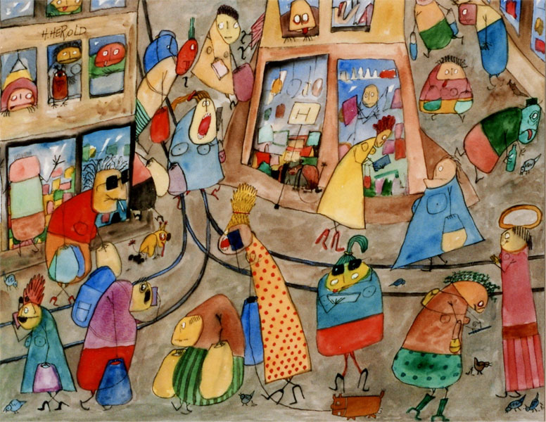 Fußgängerzone · Aquarell · 41 x 53 cm · 2015 · Privatbesitz