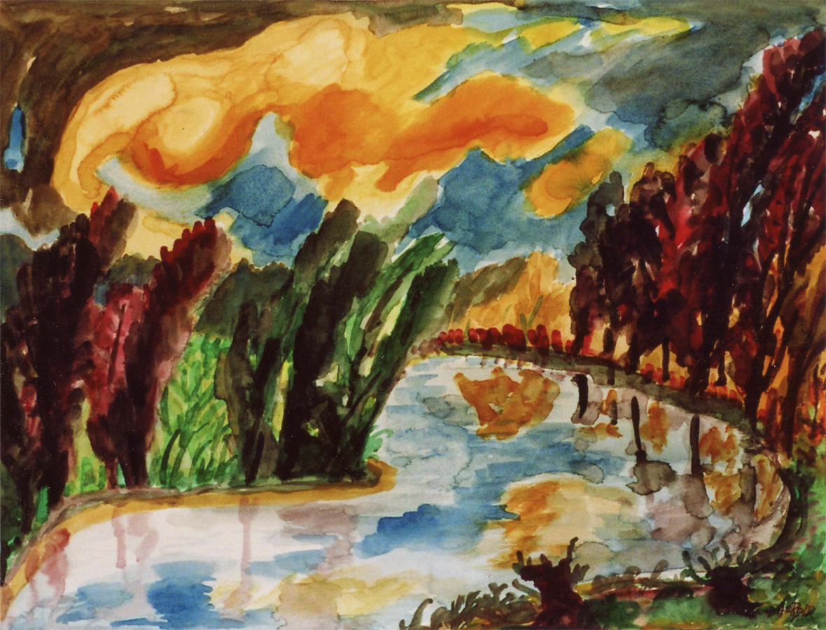 An einer Flussbiegung · Aquarell · 41 x 53 cm · 2007