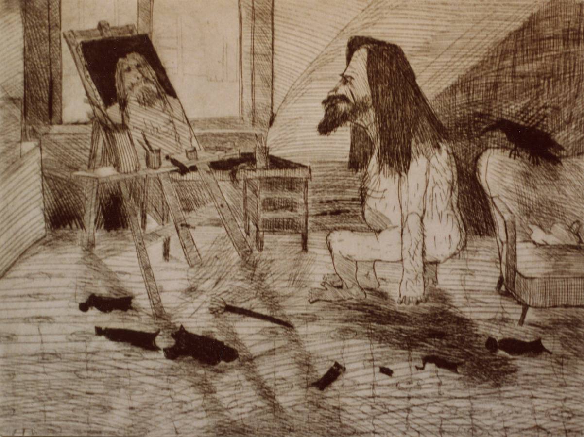 Selbst, malend · Radierung · 24,5 x 32,6 cm · 1982 · Auflage 9 Exemplare