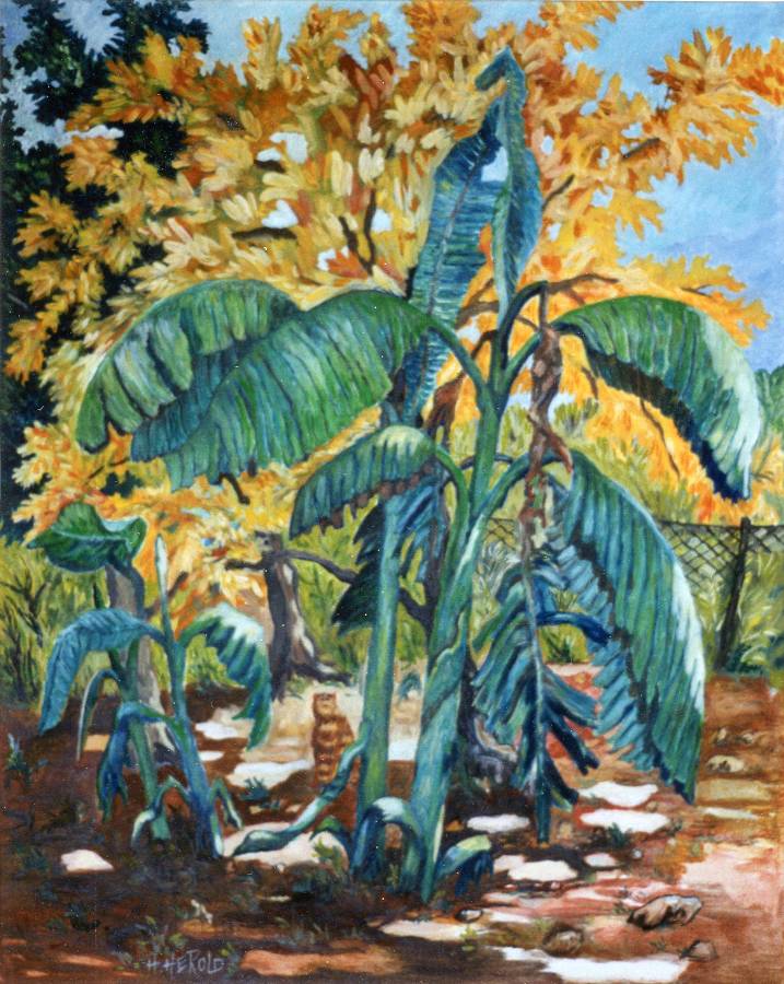 Bananenstaude in südlichem Garten · Öl auf Leinwand · 50 x 60 cm · 2001 · Privatbesitz