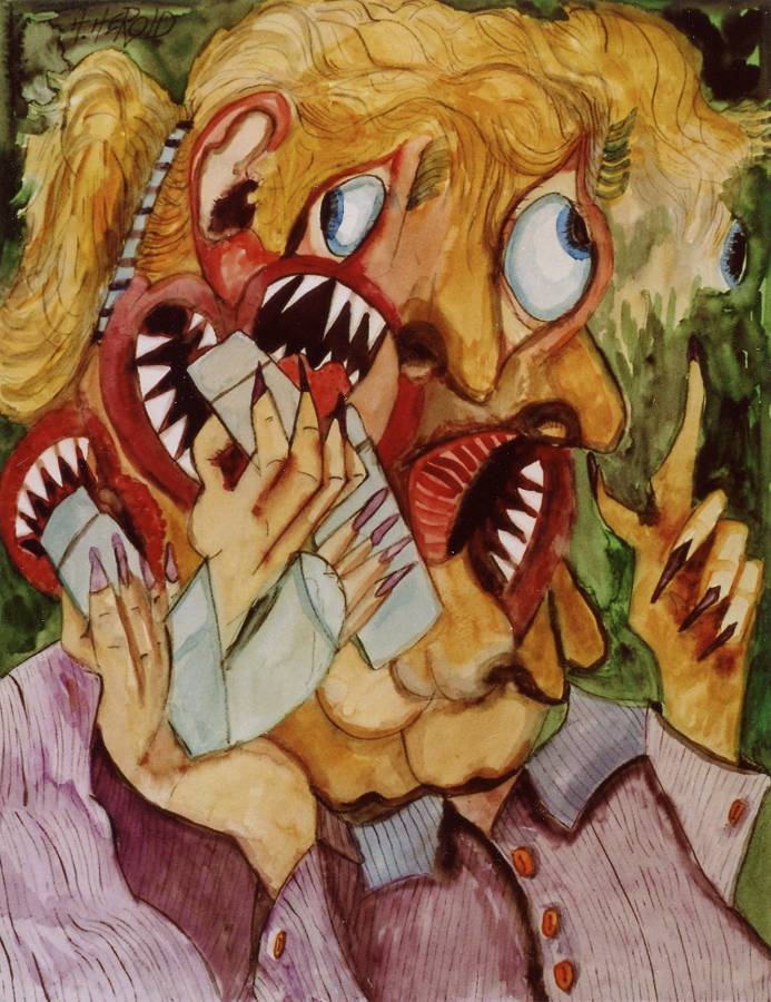 Am Telefon · Aquarell · 53 x 41 cm · 2007