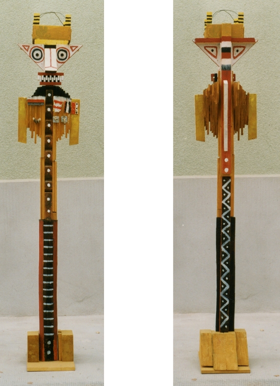 König (Ansichten) · Holz, Metalle, Kunststoff, Ölfarben · H 183cm B 34cm T 35,5cm · 1998 · Privatbesitz