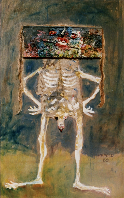Selbst · Materialcollage und Öl auf Sperrholz · 109 x 67 cm · 1986