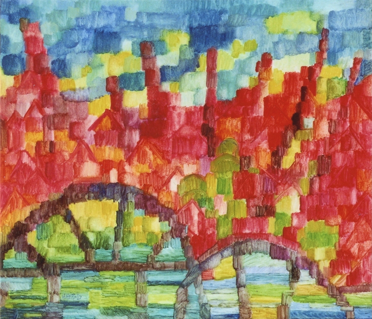 Rhythmische rote Stadt · Öl auf Leinwand · Nr.102 der Reihe · 60x70cm · 2019