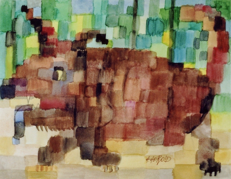 Rhythmischer Hund mit drei Beinen · Aquarell · 28,7 x 37 cm · 2012
