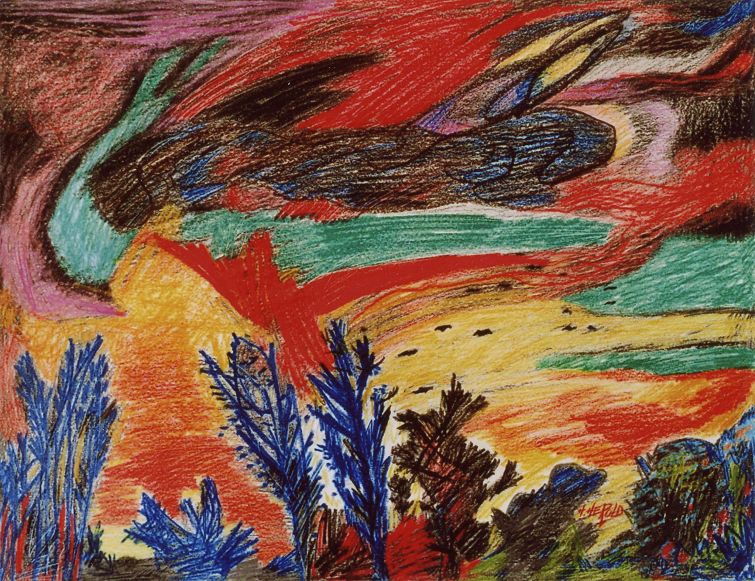 Herbstlandschaft · Farbstifte, Kohle · 41 x 53 cm · 2006