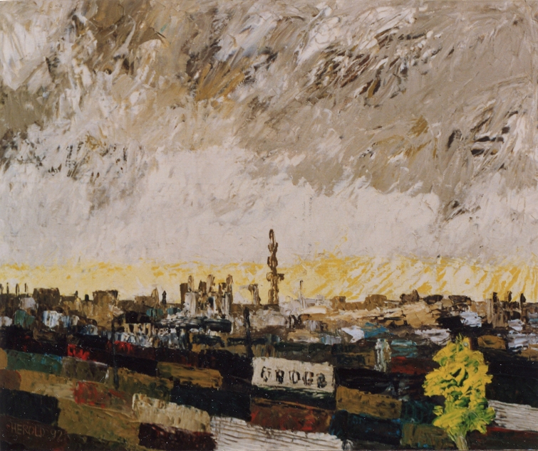 Rangierbahnhof, braune Version · Öl auf Sperrholz · 50 x 60 cm · 1992 · Privatbesitz