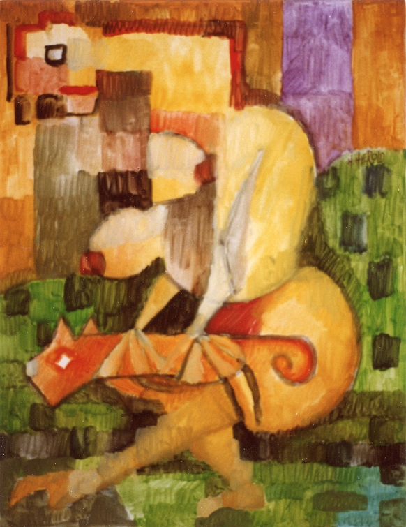 Weiblicher Akt mit kleinem Hund · Öl auf Zeichenkarton · 53 x 41 cm · 2004